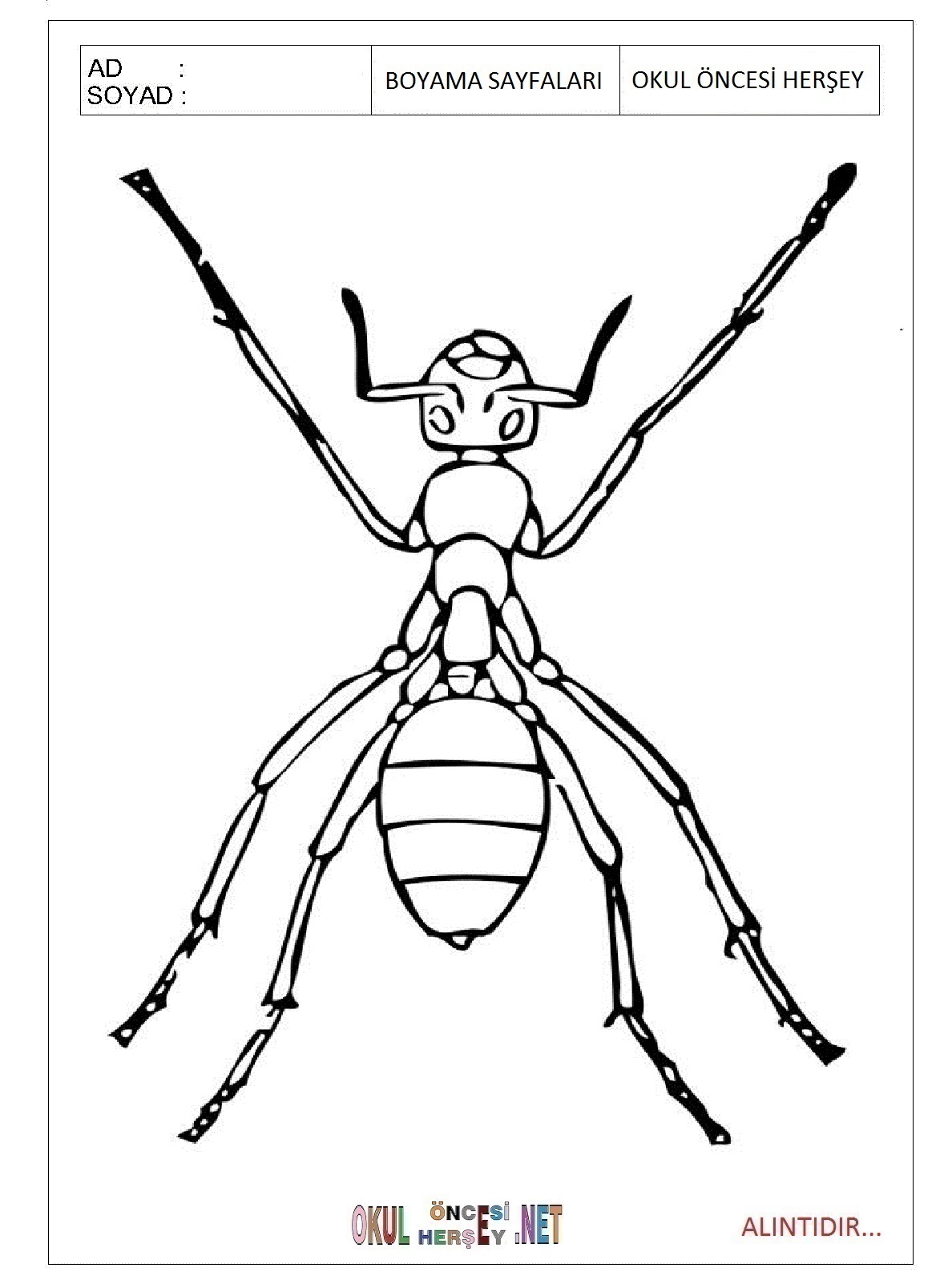 Karinca Boyama Sayfasi Okuloncesitr Preschool