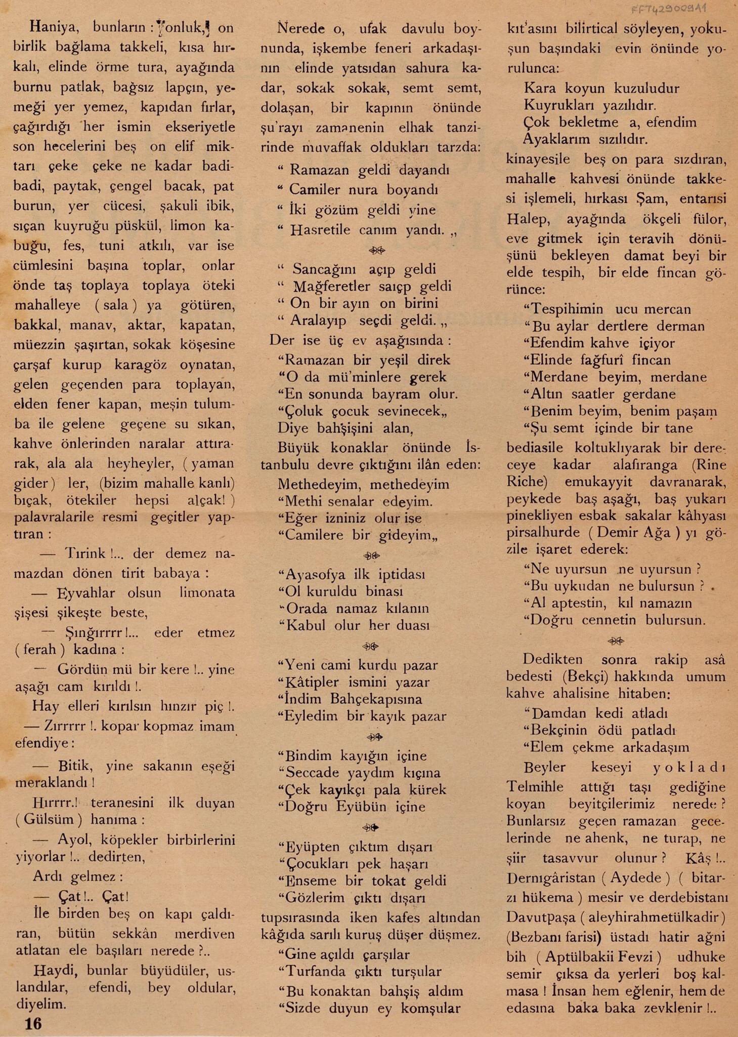 Ramazan gelenekleri içinde toplumumuzda geçmişten günümüze taşınan bir mani ile başlayalım.